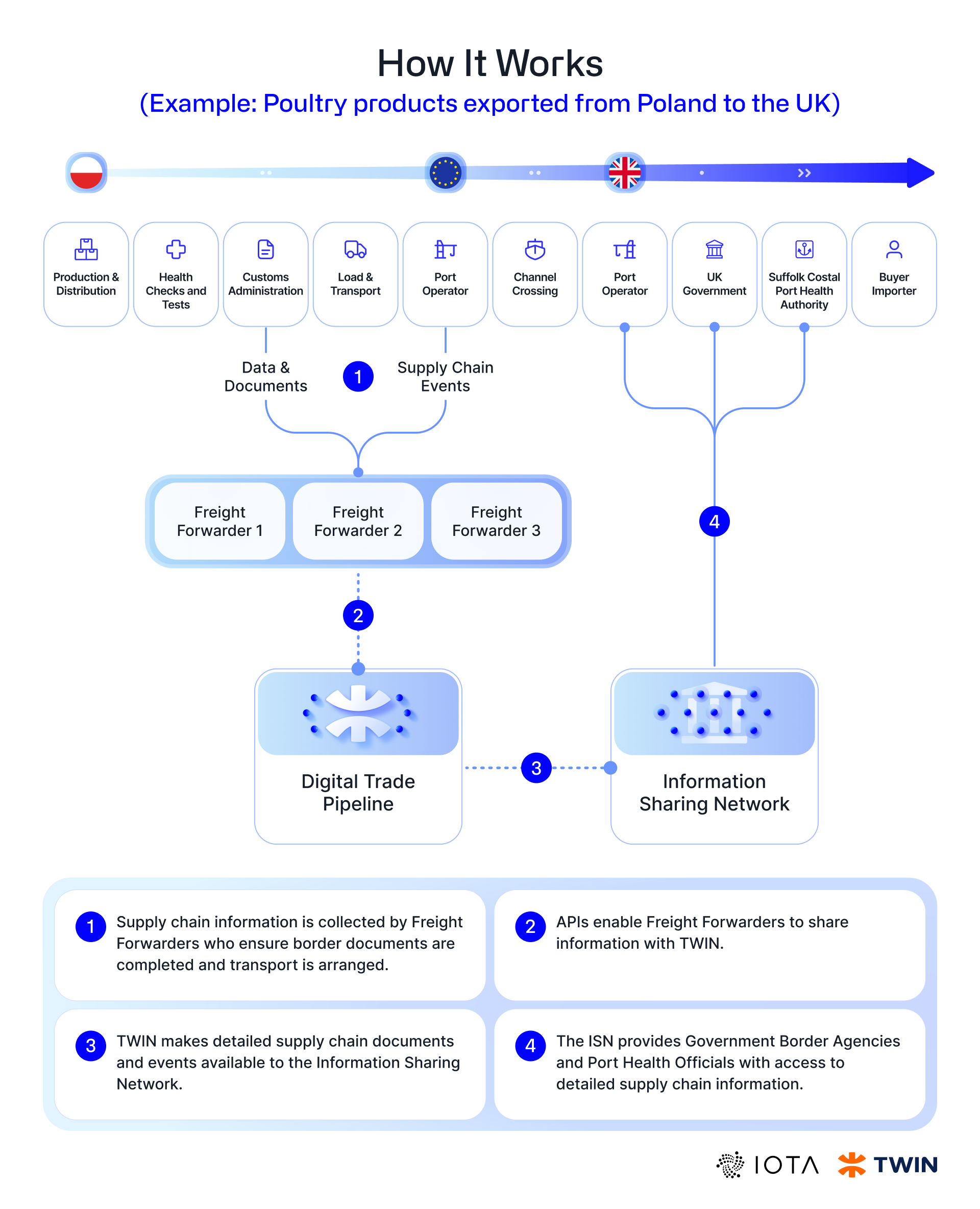 The TWIN tool brings together public and private sector partners to enable trusted, permission-based sharing of supply-chain data across borders. The platform is built on IOTA’s distributed ledger technology and is designed to integrate with existing government systems.